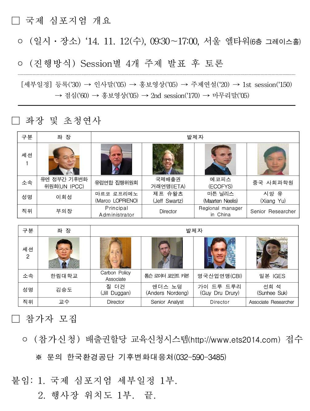 온실가스 배출권거래제 국제심포지엄(11월 12일) 행사안내