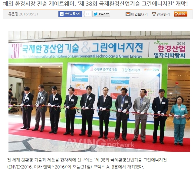 | 제목 | ENVEX2016 미디어파트너사(에이빙) 보도현황 보기 | 조회수 | 25877 |