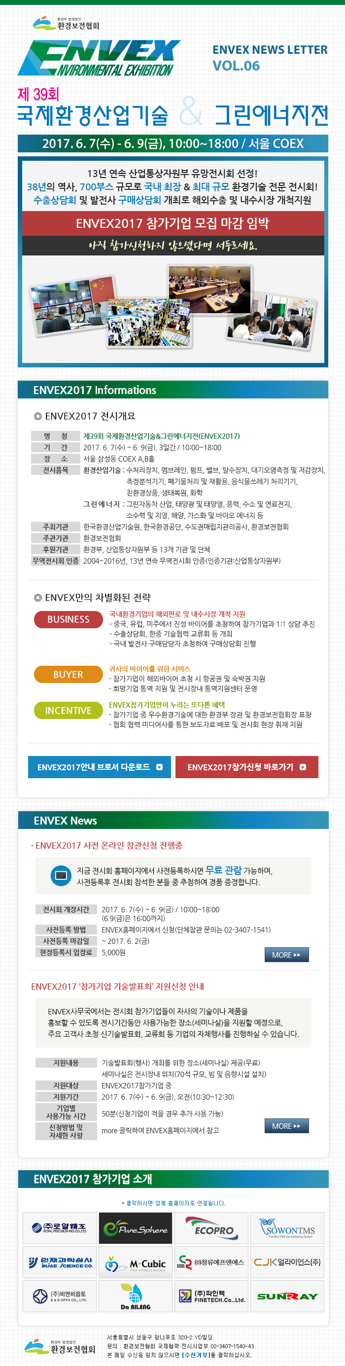 ENVEX2017 NEWS LETTER vol.6(ENVEX2017 참가기업 모집 마감 임박)